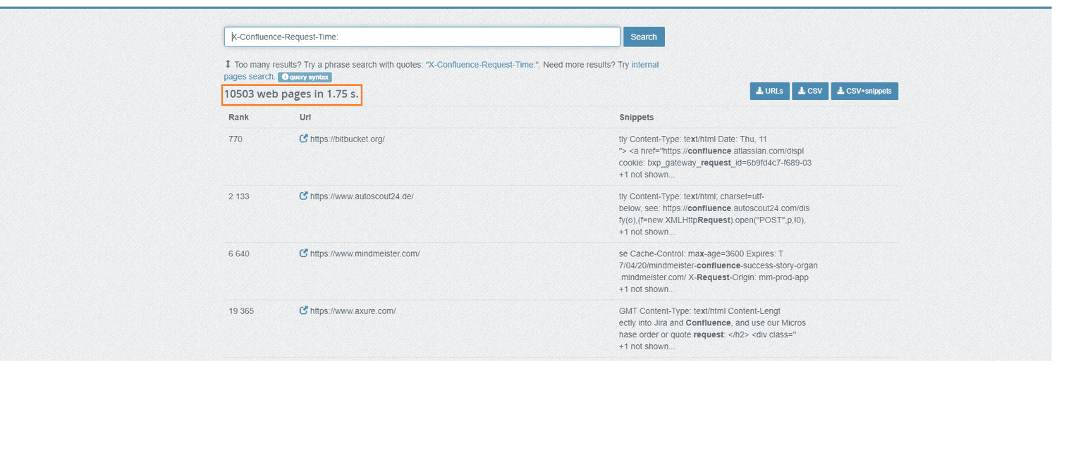 Using the Shodan search engine with the X-Confluence-Request-Time cookie will reveal more potential targets for motivated attackers: