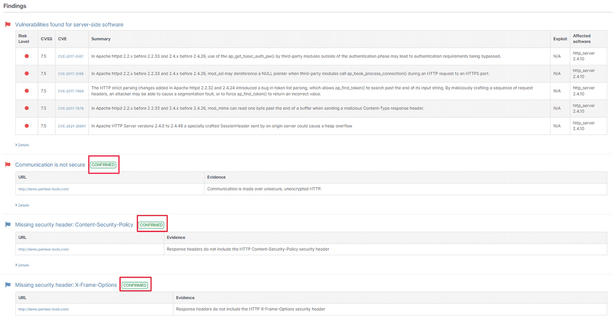 When you scan your targets with our proprietary Website Scannerthe discovered findings are automatically validated and get a specific tag.