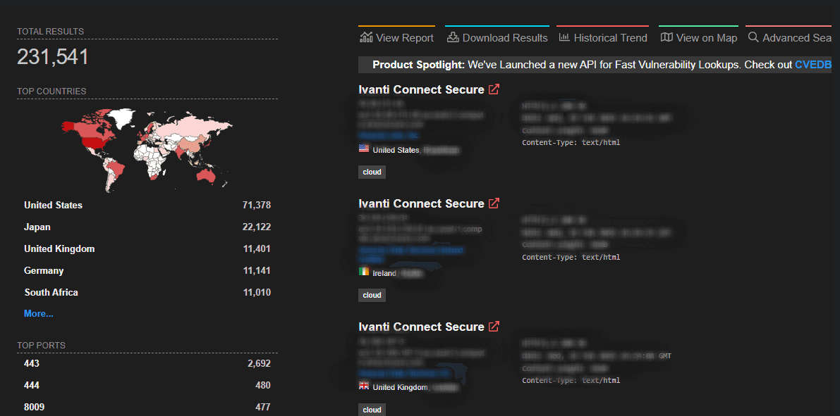 By mid-February, according to Shodan.io, approximately 230,000 instances of Ivanti Secure Connect were exposed to the internet.
