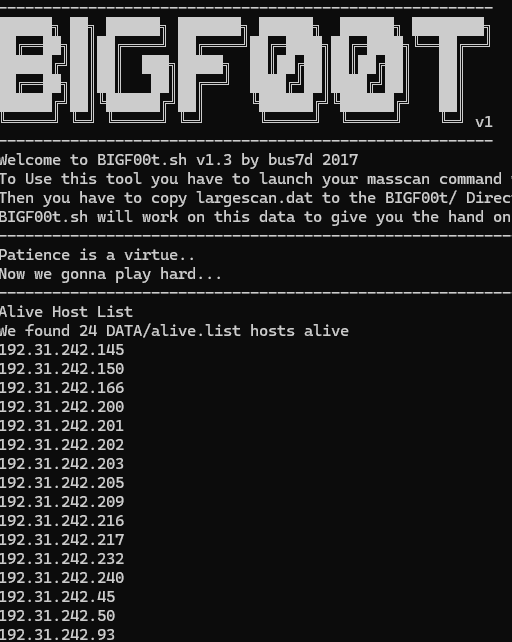 Using the output from our BIGF00t.sh script, we now have a list of live hosts in the 'ports/' directory.