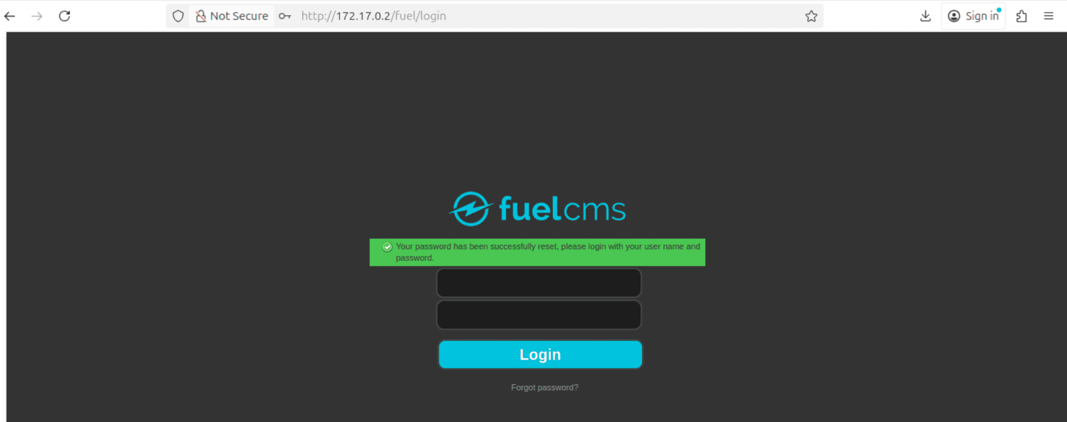 http://172.17.0.2/fuel/login/reset/d31747db59d2b297c96e51a219874fa9644301bae8d6fb19092ad7a38e38eb8b